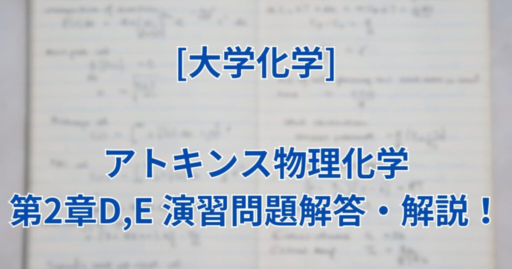 【アトキンス物理化学第10版解答】第2章D・Eの演習問題を解説!