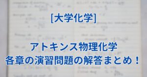 解答はアトキンス物理化学の解答書にも記載されていないので、これは筆者が求めた解答になります。計算ミスがあるかもしれないので、その点には注意してください!(計算ミスがあればご指摘いただければ幸いです。)